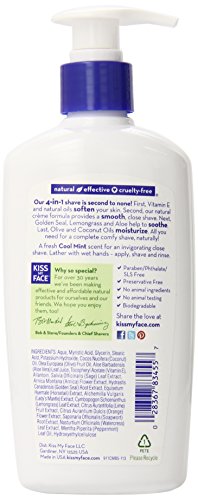 -. Binding : Health and Beauty -. Brand : Kiss My Face -. Feature : 1 Piece - 3.4oz / Contains Anti-Aging Bamboo & Anti-Oxidant Green Tea / No Parabens, Preservatives Or Artificial Colors / Enriched With Soothing Aloe And Olive Oil / Ultra Smooth For The Most Sensitive Skin -. Label : Kiss My Face -. Manufacturer : Kiss My Face -. PackageQuantity : 1 -. ProductGroup : Beauty -. ProductTypeName : BEAUTY -. Publisher : Kiss My Face -. Studio : Kiss My Face -. Title : Kiss My Face Moisture Shaving Lotion, 11 Fluid Ounce