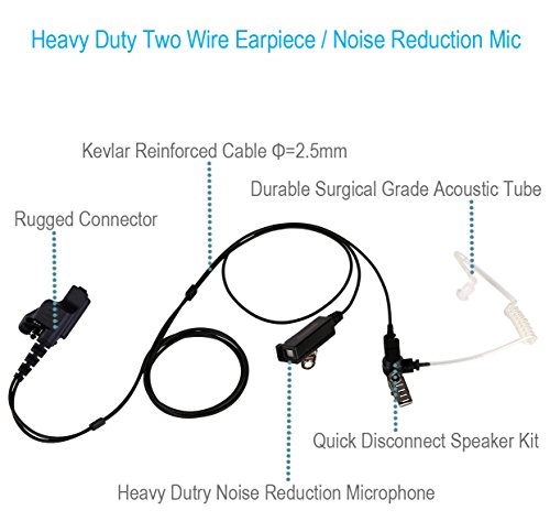 Two Wire Earpiece with Kevlar Reinforced Cable for Motorola XTS2500 XTS3000 XTS3500 XTS5000 XTS1500 HT1000 MT1500 MTS2000 XTS 2500 3000 3500 5000, Surveillance Acoustic Headset, Noise Reduction Mic