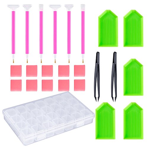 OPount 24 Pieces DIY Diamond Painting Cross Stitch Tool Set Including Diamond Stitch Pen, Tweezers, Glue, Plastic Tray and Diamond Embroidery Box for DIY Art Craft