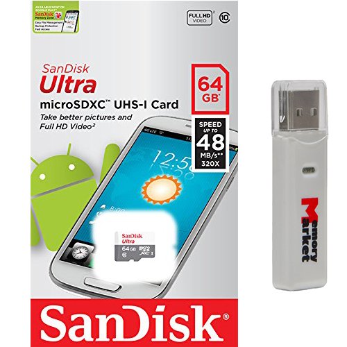 SanDisk Ultra 64GB MicroSD XC Class 10 UHS-1 Mobile Memory Card for Samsung Galaxy S7 & S7 Edge with USB 2.0 MemoryMarket Dual Slot MicroSD & SD Memory Card Reader