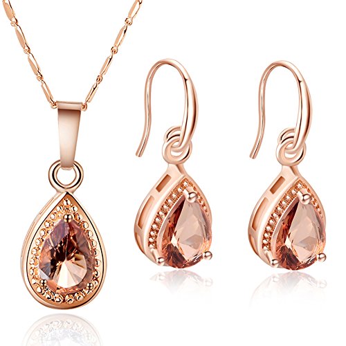 -. Feature : Necklace length:18",Pendants Size: 0.4"*1.0" (width*height) / Earrings Size:0.4"*1.2" (width*height) / Material: 18K rose gold plated, Brass, Zircon crystal / Packed in a gift box, the best gift for her / shipped by USPS