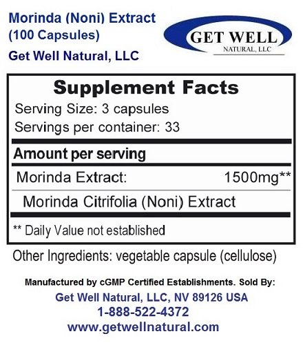 (Get Well Natural, LLC)/Vitamins Dietary Supplements/Herbal Supplements/DIRECT FROM USA/Morinda (Concentrated Herbal Noni Extract) - (100 Capsules) - Dietary Supplement - 3 Pack