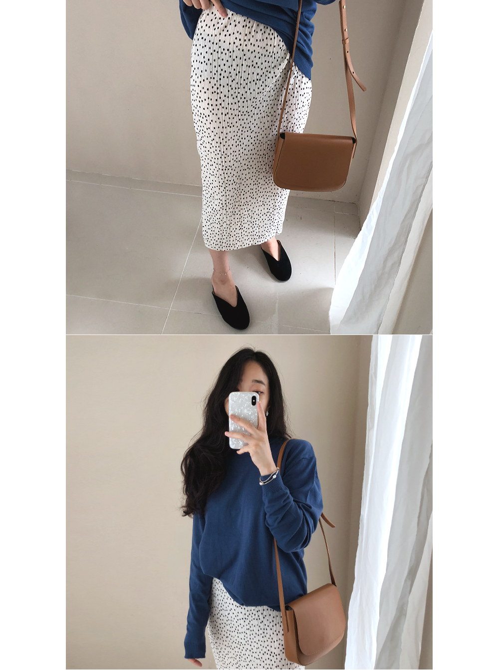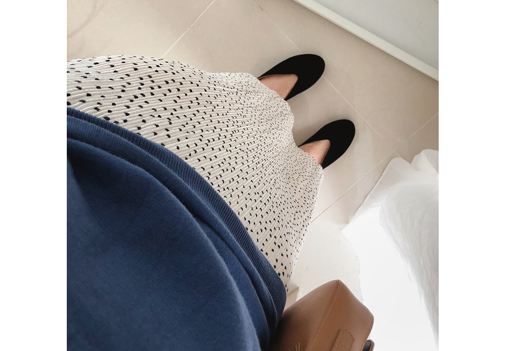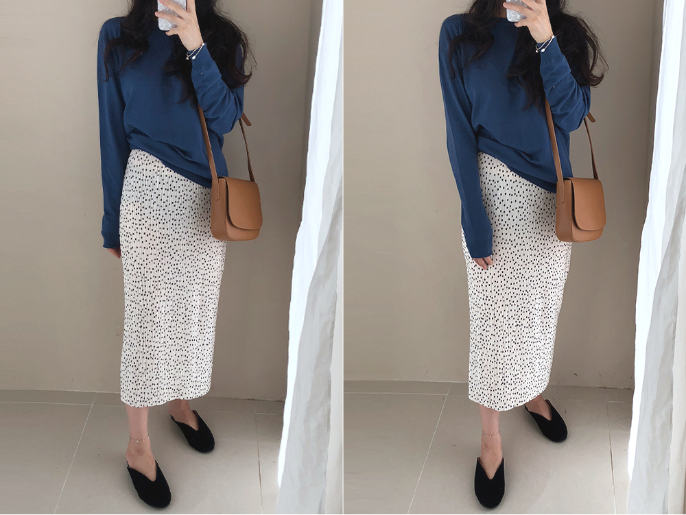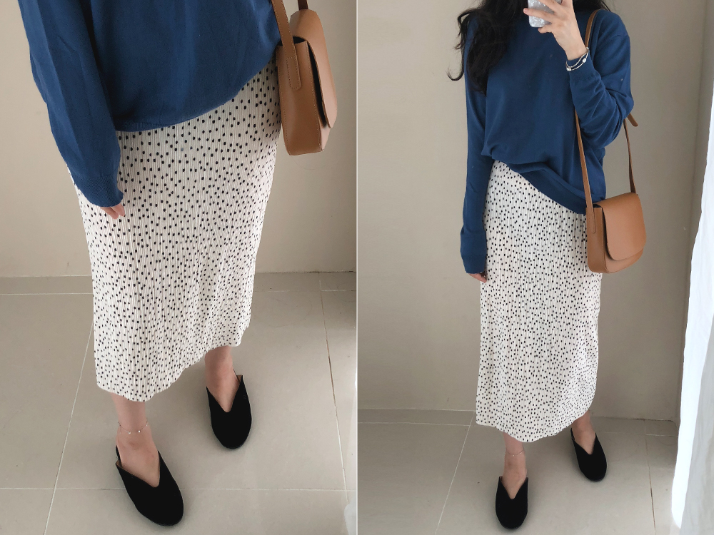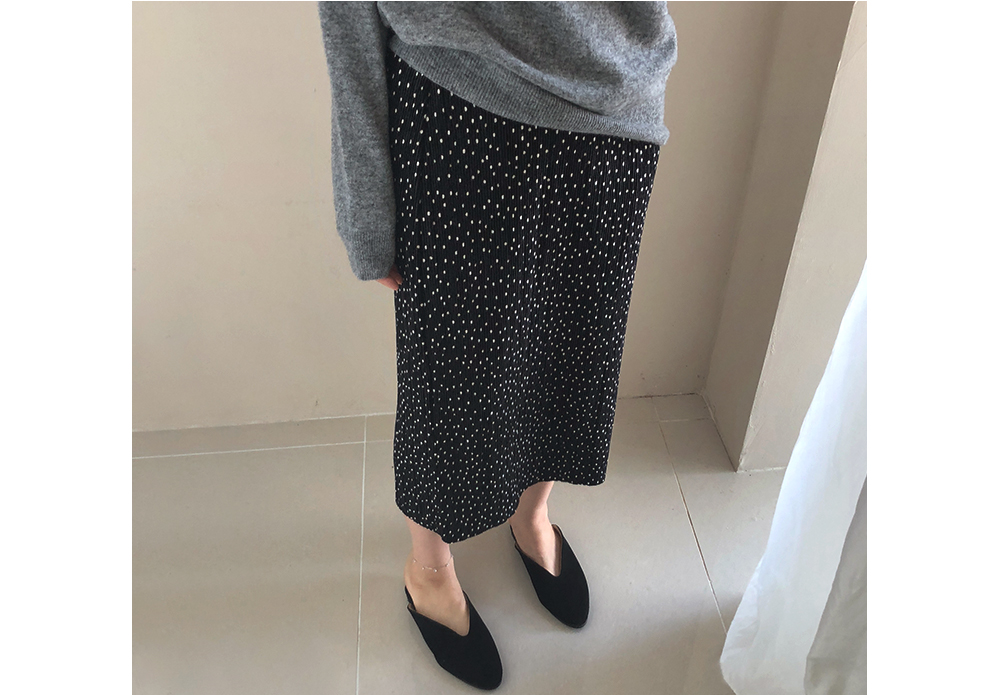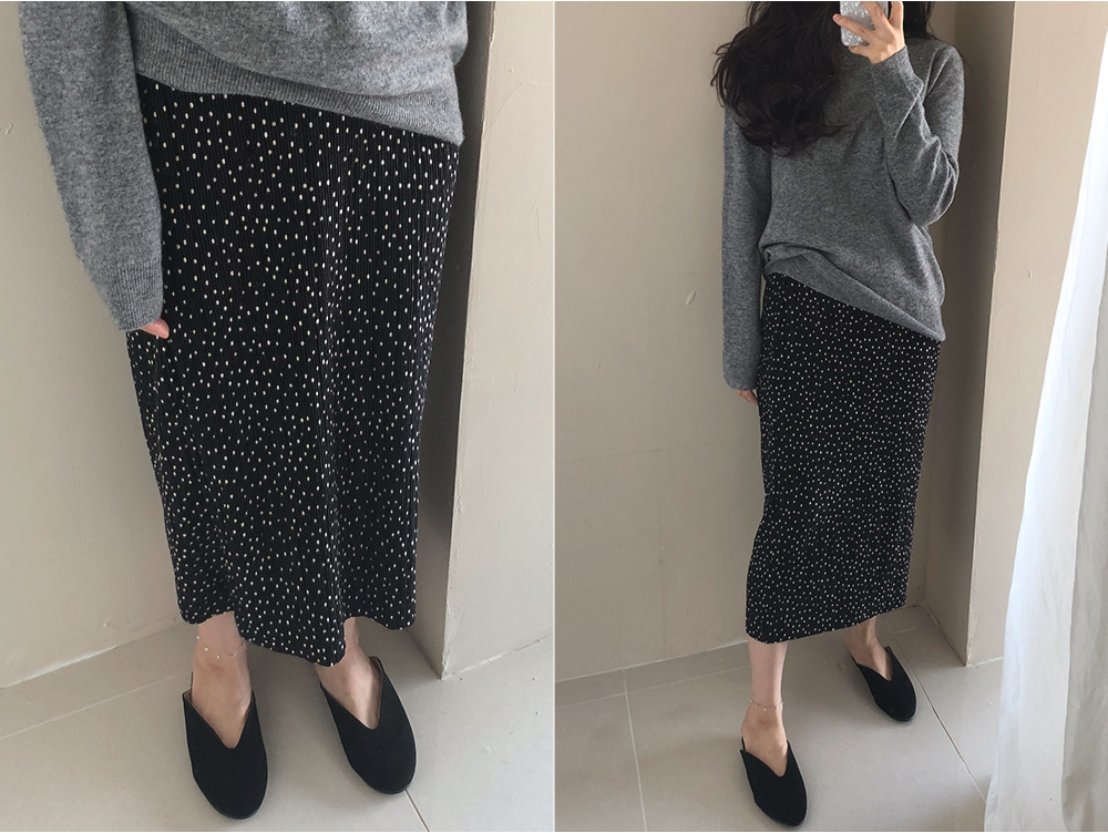 벨벳 도트 밴딩 롱 스커트