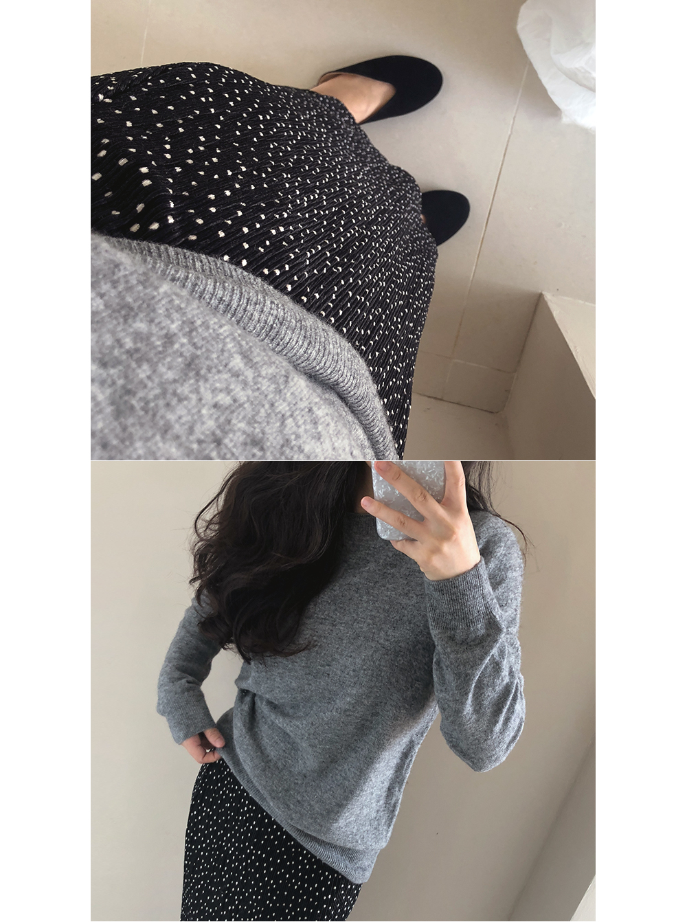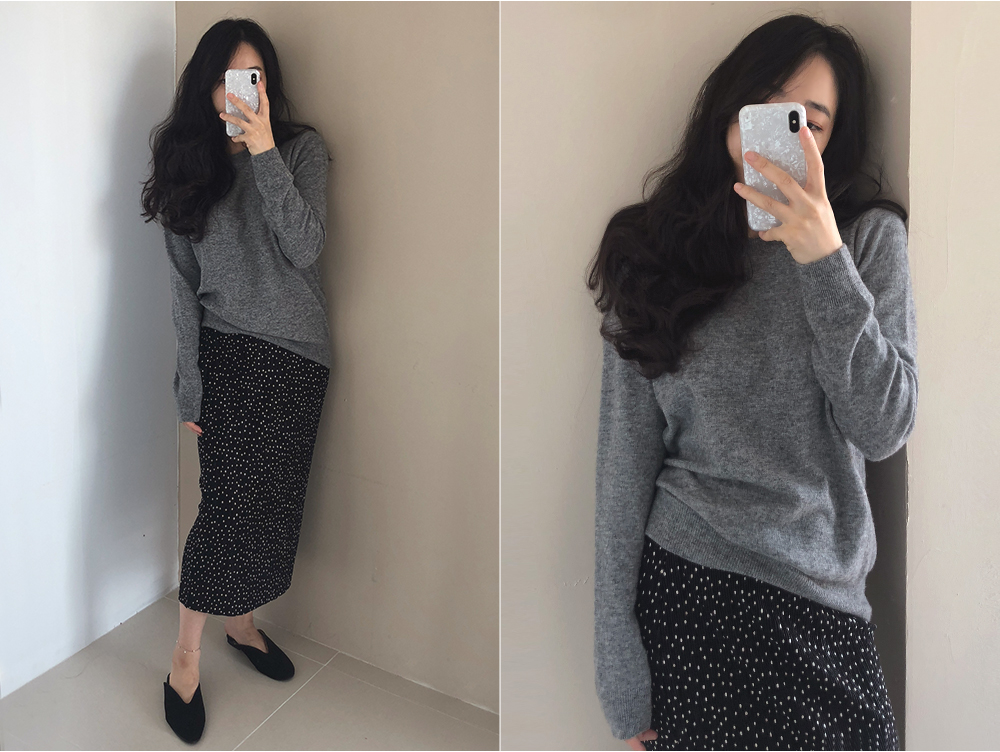 티셔츠나 맨투맨 기본 니트가디건과 함께 매치하시며
