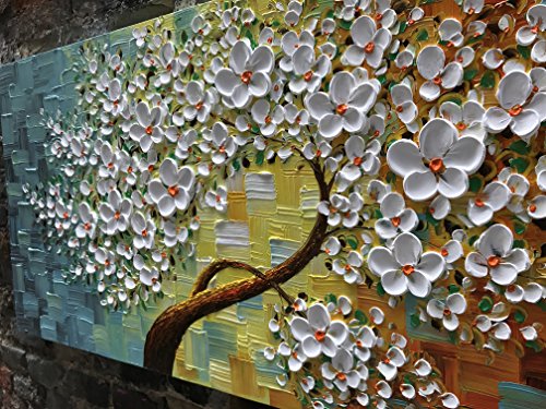 RELIABLE QUALITY: 24*48inch large beauty 3d heavy texture stereoscopic embossed oil painting, 100% experienced handmade palette knife impasto flower canvas paintings techniques, solid wood frames Offers the best value in the market.