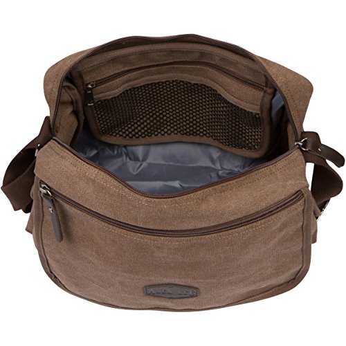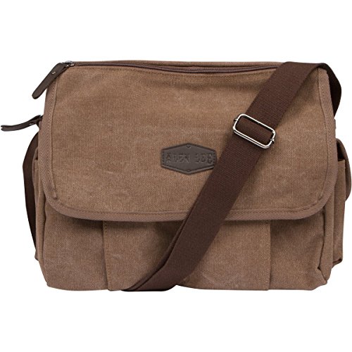 -. Brand : Alen Lee -. Department : unisex-adult (lage only) -. Feature : GET A RETRO QUALITY MESSENGER BAG DESIGN: You know just how expensive products on the vintage market are! Alen Lee's canvas messenger back fuses all retro elements and quality features in a stylish, modern design that exudes a distinct feel of times past - at a fraction of the price of highly overrated vintage pieces! / STURDY CONSTRUCTION: All our bags are engineered with durability and functionality in mind. Made by heavy duty, waxed canvas, this messenger bag will become your work or college life staple! It is sure to carry all your essentials and valuables for many years to come! / ORGANIZE YOUR DAILY LIFE: Featuring ample space and 13 DESIGNATED POCKETS, this canvas bag will help you compartmentalize your belongings and effectively reduce the time you waste fumbling with the contents of your bag in search of your keys or phone! / A MESSENGER BAG FOR EVERYONE: Ideal for kids and teens; college students and professionals; both men and women. This canvas bag makes the perfect gift to anyone in need of carrying several items around on a daily basis or those seeking to organize their work or study routine better! / VETERAN-OWNED BUSSINESS: At Alen Lee, we stand behind the quality of our products. As a veteran-owned business, we care deeply about our products' integrity and our customers' satisfaction. Buy With Confidence! -. Model : MJH-1106C -. PackageQuantity : 1 -. ProductGroup : Apparel -. ProductTypeName : LAGE -. Size : One Size -. Title : Vintage Retro Canvas Messenger Bag For Men & Women by Alen Lee - Work & Business 13 in Laptop Shoulder Crossbody Satchel Bag - Multi-Pocket Book Bag - Available In Coffee & Black Canvas