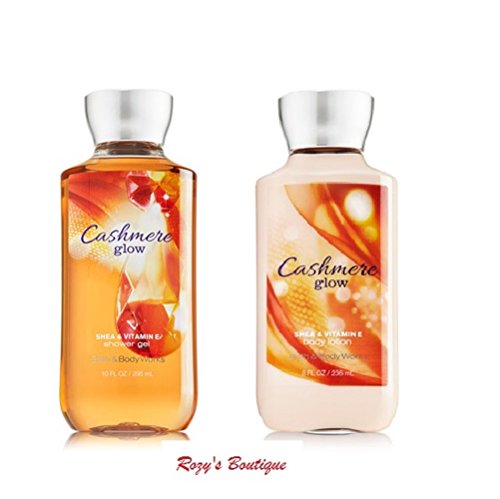 -. Feature : Shower Gel 10 FL oz. - $12.50 - Wash your way to softer, cleaner skin with a rich, bubbly lather bursting with fragrance. Moisturizing Aloe and Vitamin E combine with skin-loving Shea Butter in our most irresistible, beautifully fragranced formula! / Body Lotion - 8 oz. - $12.50 Infused with Shea Butter and our exclusive Daily Moisture Complex, our enhanced lotion contains more of what skin loves, leaving it feeling incredibly soft, smooth and nourished. Fortified with nutrient-rich ingredients like protective Vitamin E and conditioning Vitamin B5, our fast-absorbing, non-greasy formula delivers 16 hours of continuous moisture. / Key Fragrance Notes: Wrap yourself in Cashmere! Cashmere Glow envelops you in the warmth of vanilla & golden peach layered with luxurious cashmere musk / Top Notes: Bergamot, Golden Peach, Pink Guava, Exotic Berries, Gilded AP.R.Icot Mid Notes: Glowing Muguet Petals, Mimosa, Fluffy Peony, Fresh Jasmine Dry Notes: Shimmering Vanilla, Dulce De Leche, Sandalwood, Cashmere Musk / Full-Size Bottles (Gift Bag is Cellophane, Ribbon & Gift Tag)