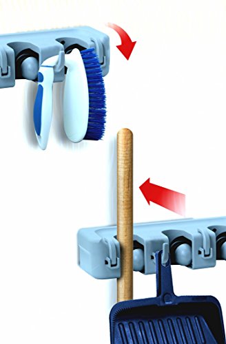Superio Mop And Broom Holder, Wall Organizer, 3 Slots and 4 Hooks, White