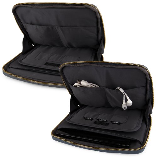 Ideal protector for your device. Remarkable design adds the right amount of protection and storage space (for accessories and cell phones), all in one fine sleeve. Padded from side to side keeps device safe from bumps and drops, while poly cotton lining interior guards against scratches and dirt.