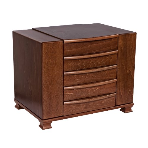 - Walnut finish jewelry box with sleek no-hardware design
