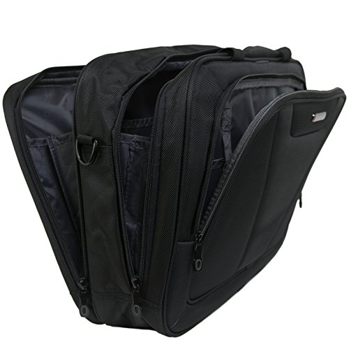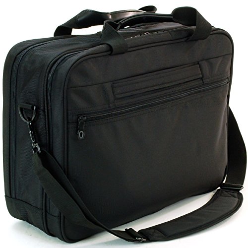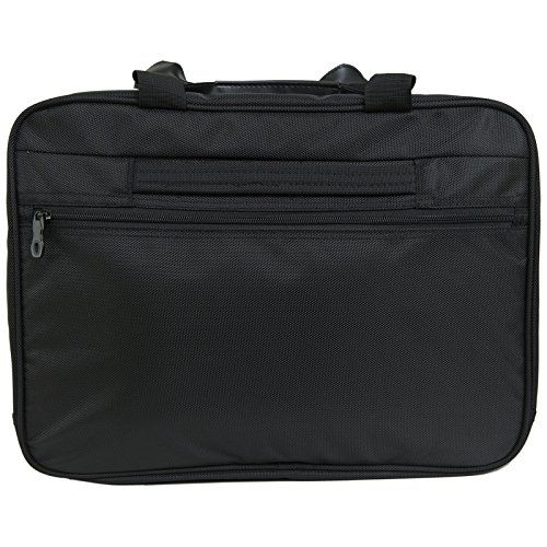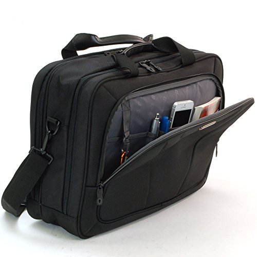 -. Feature : 1 Year Mfg's Warranty Against all Defects / Measures: 17" X 13" X 5"; 2 lbs 6 oz / Detachable padded shoulder strap with adjustable reinforced straps / Front zippered compartment with organizational pockets for pens, keys, cell phone, and other items / Main compartment includes a TSA-Friendly padded laptop compartment, tablet pocket, and 2 additional panel pockets: Multiple additional sections for organization