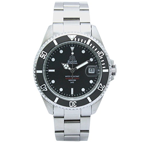 원본상품명: [エルジン]ELGIN 腕時計 200M防水 オ?トマ 日本製ム?ブメント 逆回?防止ベゼル オ?ルステンレス ブラック×シルバ? FK1405S-B メンズ