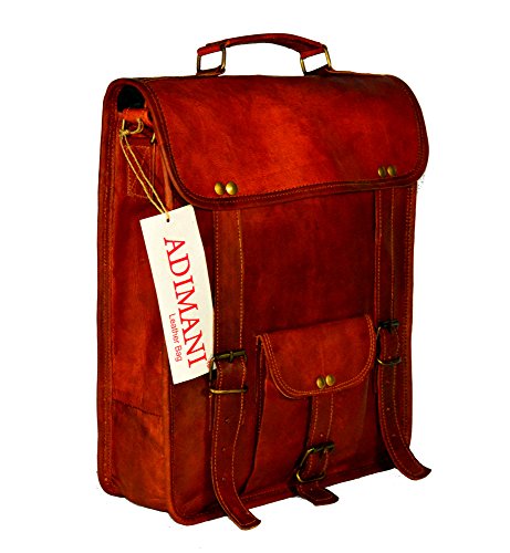 -. Binding : Electronics -. Brand : ADIMANI -. Color : brown -. Feature : Classic retro style bag.This bag has enough room for your books, laptop, files and other essentials. Leave an impression on your colleagues and your friends by this classic unisex bag. / Carry your attitude on your sleeve with this stylish retro leather messenger bag. Handcrafted skillfully with three internal compartments and canvas lining inside, this compact bag manages to give you your bit of space without missing out on style which speaks volumes. Worked with genuine leather, this timeless bag proves to be your answer to wrinkles and everyday questions. / Please note that since this is original leather bag it comes with a distinct smell which fades away after 3-4 weeks of regular use. / Also the leather might feel a bit stiff in the starting but it loosens out with usage. / Genuine Leather -. Label : ADIMANI -. Manufacturer : ADIMANI -. Model : ALB000156 -. MPN : ALB000156 -. PartNumber : ALB000156 -. ProductGroup : PC Accessory -. ProductTypeName : COMPUTER_COMPONENT -. Publisher : ADIMANI -. Studio : ADIMANI -. Title : ADIMANI Leather Laptop Messenger Goat Leather Bag with Size 11L13H4W inches cross body, messenger and Sling handmade leather bag unisex