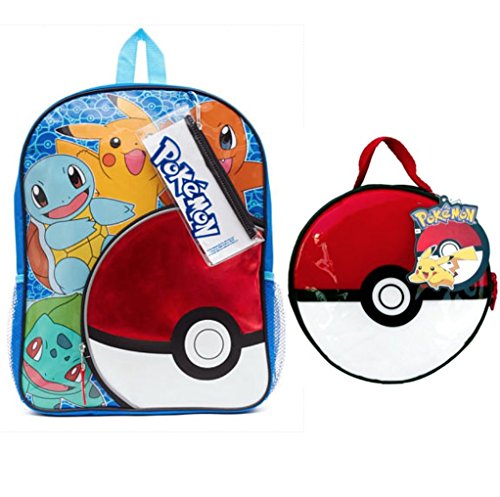 Pokemon Pokeball Backpack & Lunch Bag with Pencil Case and Sticker Sheet