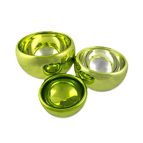 NOVICA Hand Blown Green Glass Bowls, 169 oz., 101 oz., 33 oz. 'Chrome Lime' (set of 3)
