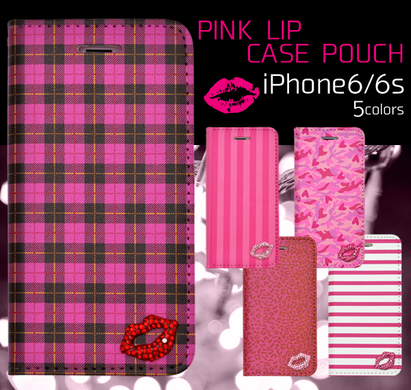 iPhone6用ピンクリップケースポーチ