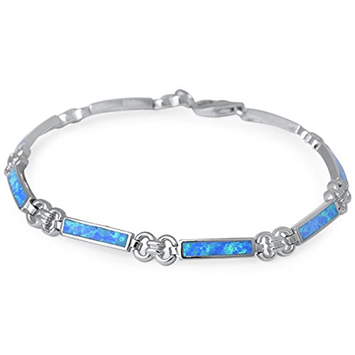 -. Title : Bar Lab Created Blue Opal .925 Sterling Silver Bracelet