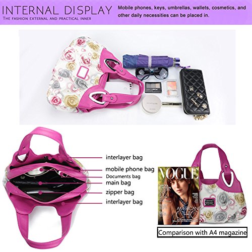 - [Handbag structure] consists of six pockets, the external by two magnetic buckle pocket (you can hold your small item, such as your key, or card) and the main bag composition. The main bag contains: 1 mobile phone bag, 1 document bag, the main bag, 1 zipper bag. Perfect for daily use, help you will organize all your items.
