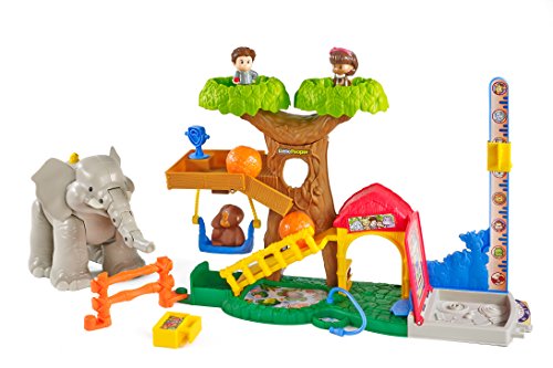 -. Feature : Interactive BIG elephant features articulated movement and 3 activation points for music & silly sounds! / Rock monkey back & forth on the teeter-totter tree top / Use the attached tools to clean, measure, weigh - and even check the animals' eyesight! / Includes zoo playset, Zookeeper, Mia, Big elephant, and classic scale monkey figure, 2 food pieces & fence connector / Ships in Frustration-Free Packaging