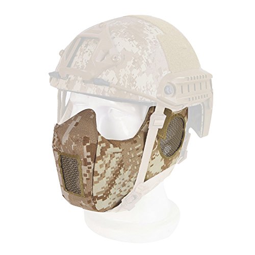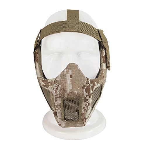 -. Binding : Misc. -. Brand : YASHALY -. Feature : Adjustability- The side strap with adjust belt ensure the fit / Wider range use- can be used in airsoft, hunting, paintball, shooting and any other outdoor activities / Comfort-the sponge strap makes the mask fitting well with your face. Aiming down is possible when wearing the mask. / aving space-A soft foldable mask can be tucked in any bag and carry everywhere / Steel mesh mask :A unique cool steel mesh mask protects your face well. Also, you can still breathe fine in outdoor games. -. IsAutographed : 0 -. IsMemorabilia : 0 -. Label : YASHALY -. Manufacturer : YASHALY -. MPN : G103 -. PartNumber : G103 -. ProductGroup : Sports -. ProductTypeName : SPORTING_GOODS -. Publisher : YASHALY -. Studio : YASHALY -. Title : YASHALY Tactical Airsoft Mask Breathable Half Lower Face Metal Steel Net Protective prop for Hunting Paintball Military Amry Party CS
