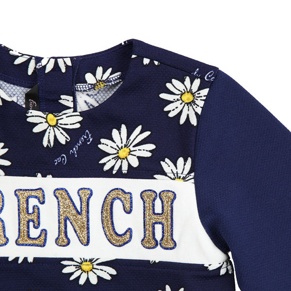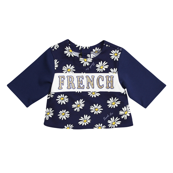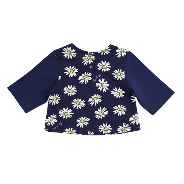 설명:핫한 스포티한 분위기를 같이 소프트하게 믹스해 풀어낸 데이지 배색 드롭탑입니다. 상판에 데이지 전판 나염과 WH배색이 있고, 소매는 NY배색이 되있습니다. 상판 배색에 블링블링한 타이포 포인트가 멋스럽습니다. 큐트한 스포티 캐주얼 캐릭터 룩을 연출하기 좋은, 포인트 데일리룩으로 좋은 아이템으로 소장가치있는 T입니다.