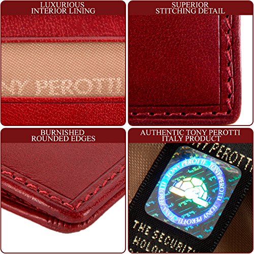 Since 1970 Tony Perotti has been constantly introducing styles that set future trends while maintaining a firm footing in the noblest Italian traditions of leather craft. All of our Tony Perotti products are made from carefully selected genuine Italian full grain hides, tanned in the most recognized expertise and leather craftsmanship based on ancient and noble Italian artisanship. The cool Italian weather prevents any flea or tick irritation to the animals, attributing to the top quality and purity of the leather without any scratches or bites. The tanning process utilizes an eco-friendly approach by using vegetable extracts without the use of toxic or polluting substances. This vegetable tanning process allows the leather to retain its natural look and feel, as well as beautifying and maturing over time to develop a pleasant patina that gives the wallet an antique look as it gets older. It also allows the leather to be easily manageable and maintained, as the vegetable oils and dye can cover any scratches or marks on the leather by rubbing it off with a fine cloth or leather cleaning lotion. We are certain that you will love and appreciate our products. Thank you for being part of this tradition!