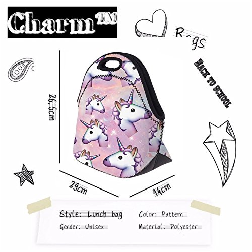 Emoji Zipper Unicorn Lunch Bag Tote 10.4" X 11.4" X 5.5" Lunch Box by CharmTM