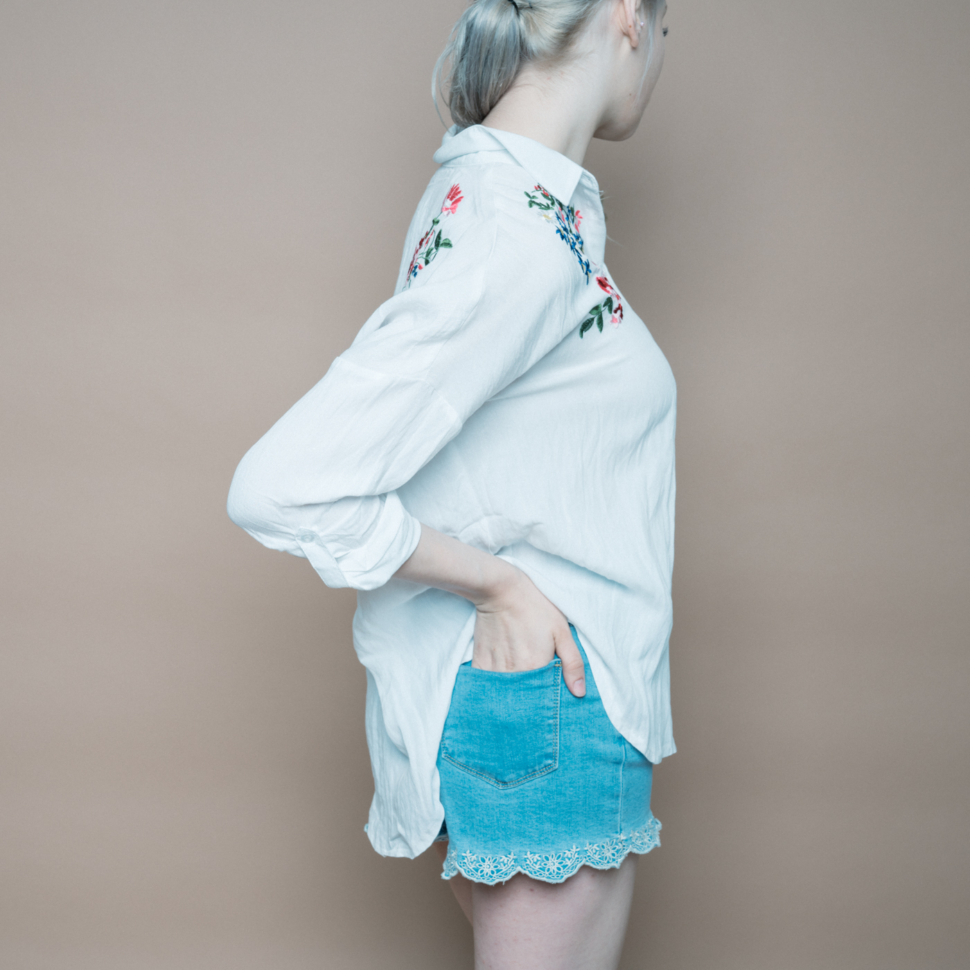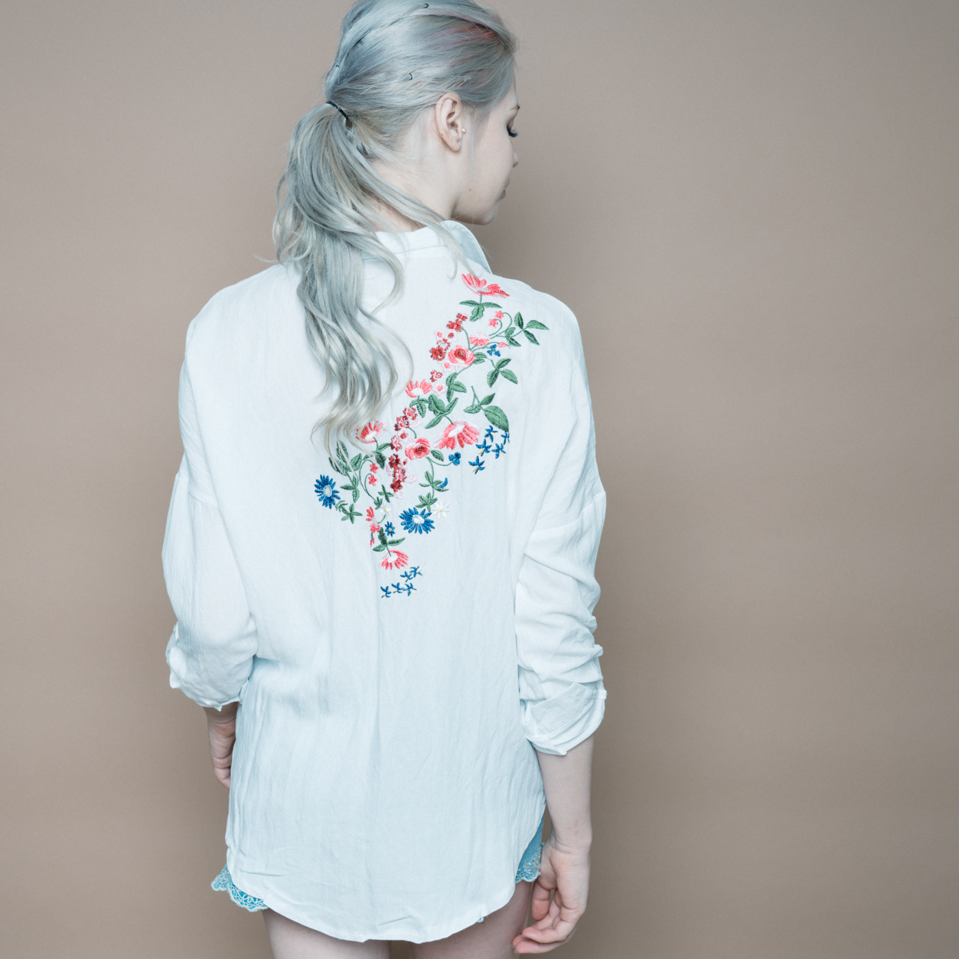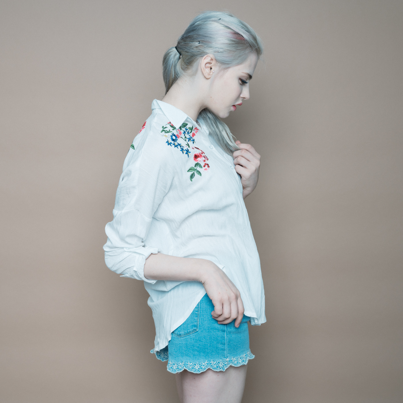 플라워 자수 퀄리티가 돋보이는 스타일입니다.