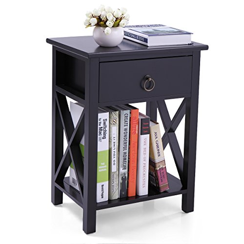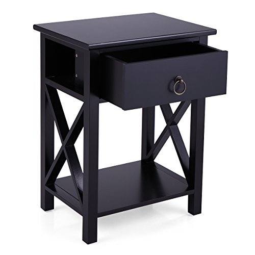(LAZYMOON)/Kids' Furniture Room Decor/Room Decor/DIRECT FROM USA/LAZYMOON Wood Nightstand Table X-Design Sofa End Side Table Storage Shelf w/ 1 Drawer, Black Finish