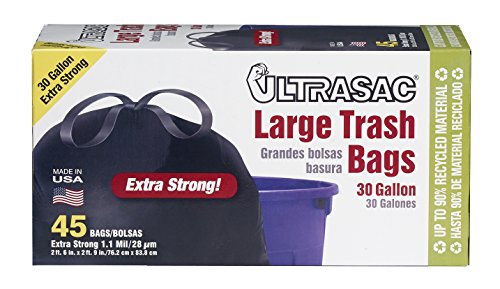 Ultrasac UL 30G-45 Trash Bags, 30 gal, Large, Black (Pack of 45)