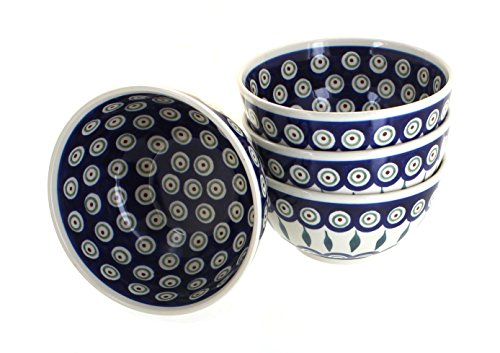 Polish Pottery Peacock 4 Piece Dessert Bowl Set