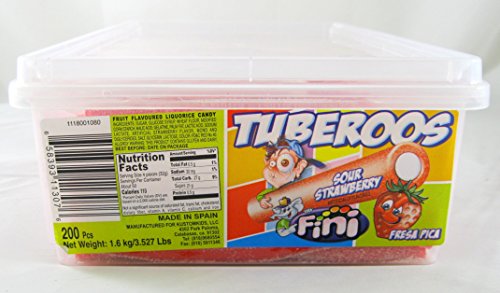 -. Title : Tuberoos Red Color White Fondant Filled Sour Licorice Sticks, Strawberry Artificially Flavor. - 200 Pieces Tub