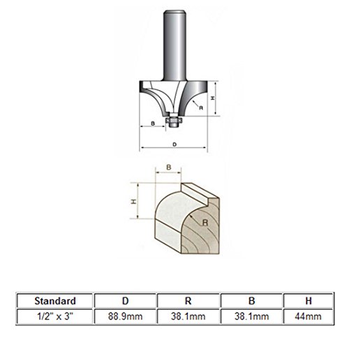uxcell 3-inch Cutting Diameter, 1-1/2-inch Radius, 1/2-inch Shank Carbide Tipped Corner Rounding Router Bit