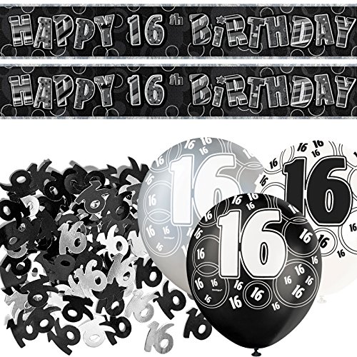 -. Binding : Toy -. Color : Black -. EAN : 0705332343657 -. Feature : Each pack includes a 9ft foil P.R.Ismatic banner / 2 packs of 0.5oz confetti / an assortment of 6 balloons in 3 colours including black, silver & white / all featuring a stylish black & silver circle pattern design. -. IsAdultProduct : 0 -. Label : Balloons and Party -. Manufacturer : Balloons and Party -. Model : BPWFA-4119 -. MPN : BPWFA-4119 -. PackageQuantity : 1 -. PartNumber : BPWFA-4119 -. ProductGroup : Toy -. ProductTypeName : TOYS_AND_GAMES -. Publisher : Balloons and Party -. Studio : Balloons and Party -. Title : Black Silver Sparkle 16th Birthday Banner Party Decoration Pack Kit Set -. UPC : 705332343657
