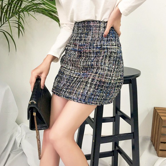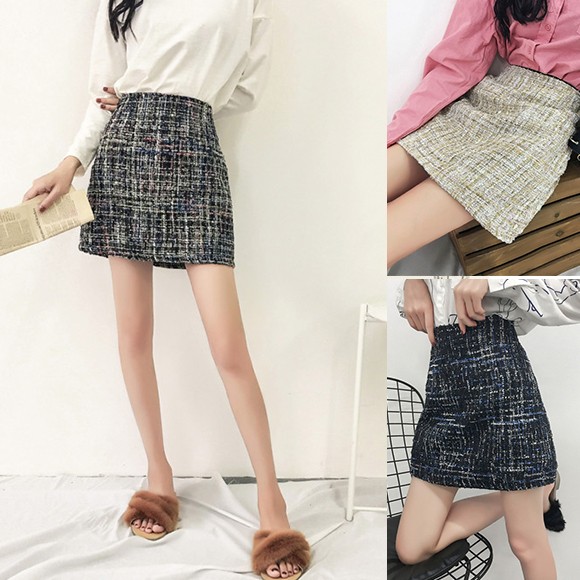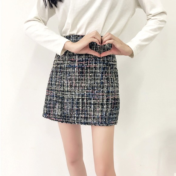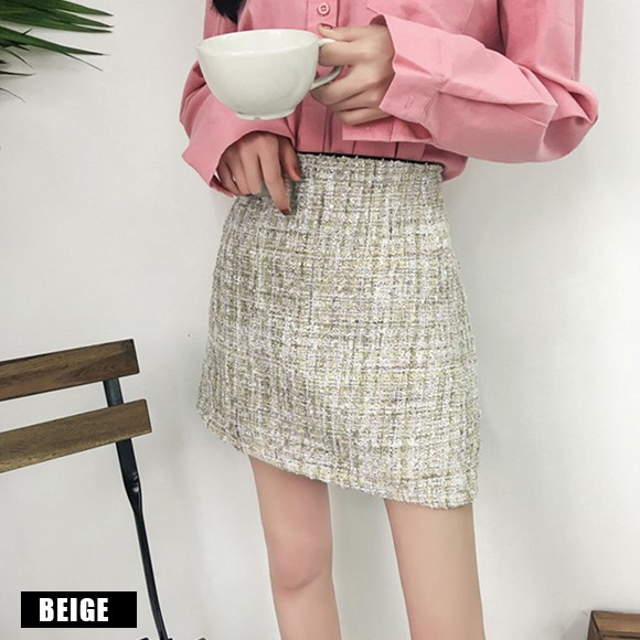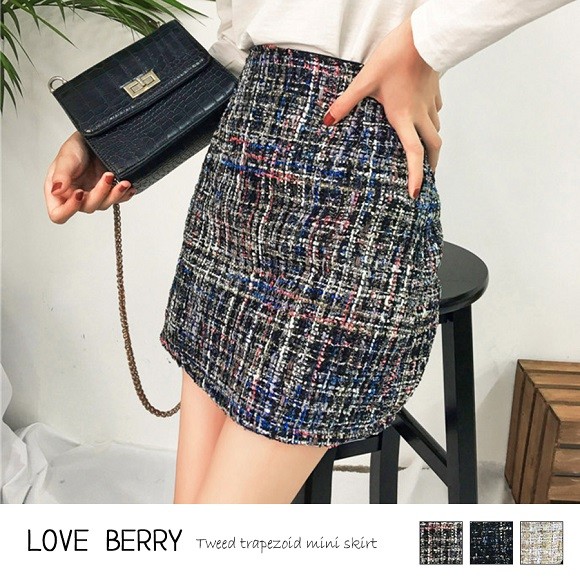 季節感たっぷりのツイード素材の台形ミニスカート♪