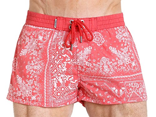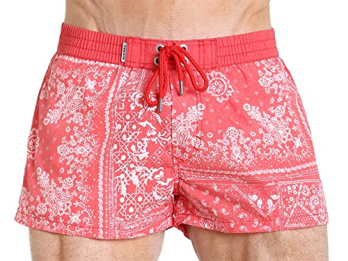 Product DescriptionAn intricate paisley print decorates this handsome pair of Diesel swim shorts. The metal eyelets and drawstring tips are embossed with the Diesel logo, reminding you to "Smile in life!"0