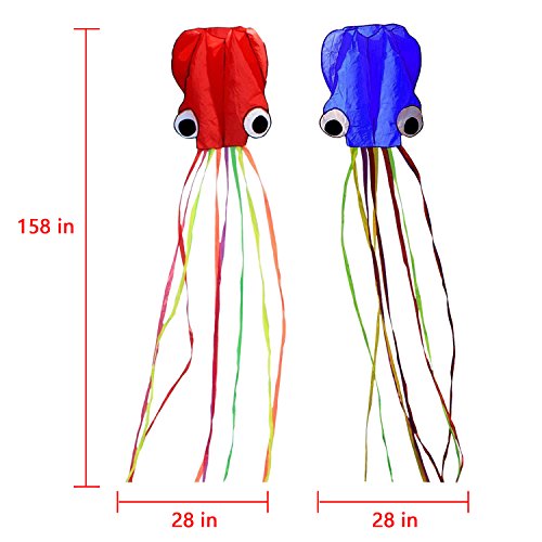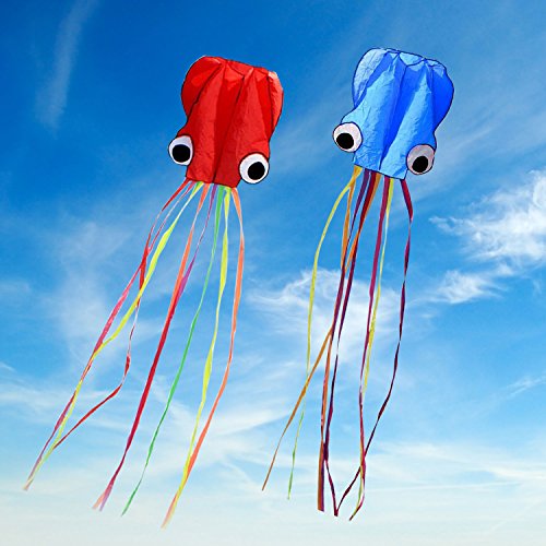 STYLISH OCTOPUS KITES: Designed with cool stylish pattern. It will be attractive when you fly it in the park, beach or anywhere. Packaged with 2 color kites, Red and Blue.