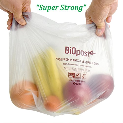 - 100% CERTIFIED COMPOSTABLE, with their material derived from corn starch as a sustainable and eco-friendly option. These compostable bags have the BPI ASTM D6400 certification required by city composting.