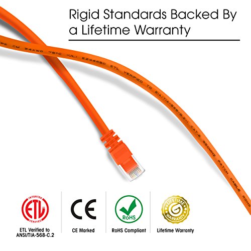 GearIT 20 Pack, Cat 6 Ethernet Cable Cat6 Snagless Patch 1 Foot - Computer LAN Network Cord, Orange
