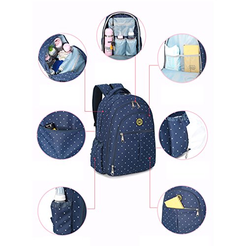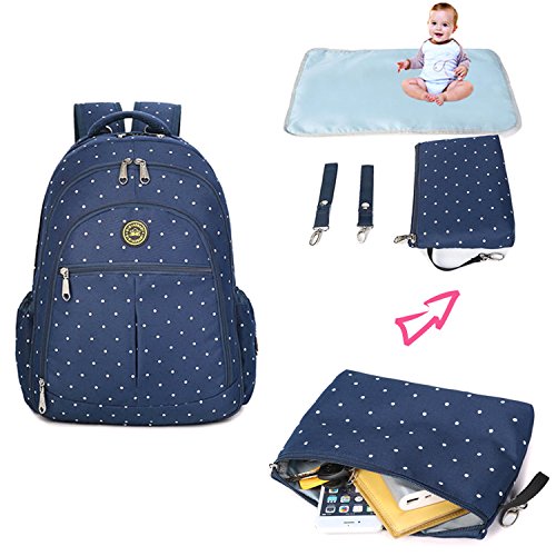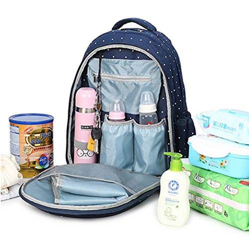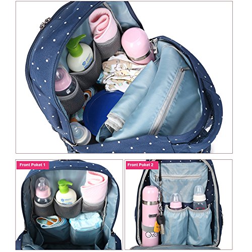 The diaper bag has the most padding You've ever seen on any bag. Extremely comfortable. The very front pocket is deep and the mesh pockets on the sides are strong. The second pocket is great for wipes and bottles And the main compartment has enough pockets to stay organized. It doesn't come with a changing pad,Really nice quality and very cute!Feature