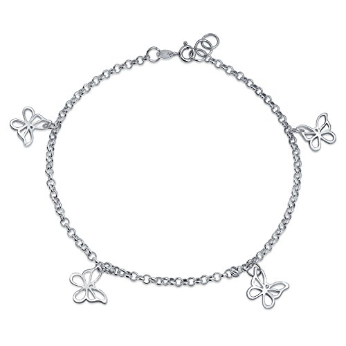 -. Title : Bling Jewelry Sterling Silver Dangling Butterflies Ankle Bracelet 10in