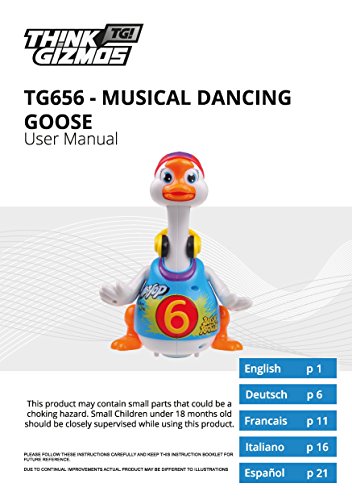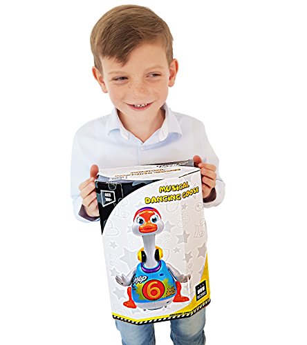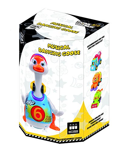 The cool Dancing Musical Hip Hop Goose is the next toy you will want for your child's toybox. The Musical Dancing Goose is part of ThinkGizmos Awesome Child Development Series of toys. It features a range of different music and sounds to keep your child entertain for hours. As an added bonus, it can also help with baby's muscle development as they attempt to move and copy the goose. Made from strong and durable plastic it is built to last even when up against the sometimes-heavy hands of children. The music, lights and movement will attract your child's attention and help keep them entertained and having fun. The TG656 Musical Dancing Goose is recommended for children aged 18 Months + and is a 'ThinkGizmos' branded product.Feature