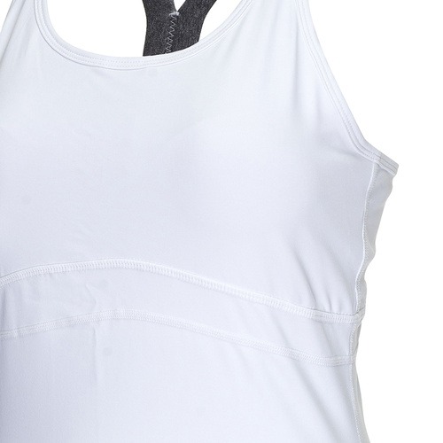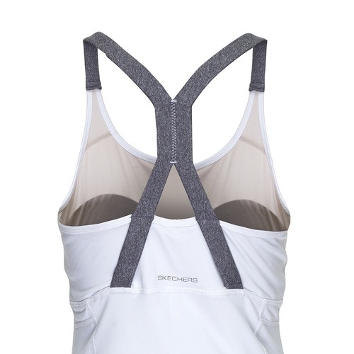 MD'S COMMENT오픈백 디자인과 스트랩에 그래픽을 추가한 여성스럽고 트랜디한 아이템입니다. 디테쳐블 캡이 내장되어 있어 운동시 하나만 편안하게 입을 수 있습니다.