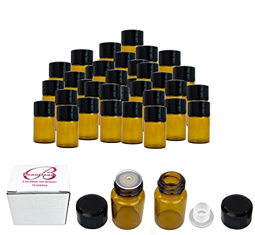 24 Pack Beauticom USA 5/8 Dram (2ml) Amber Glass Vial for Massage Oils, Fragrances, Serums, Mixes and Other Liquids with Orifice Reducer and Dropper Top