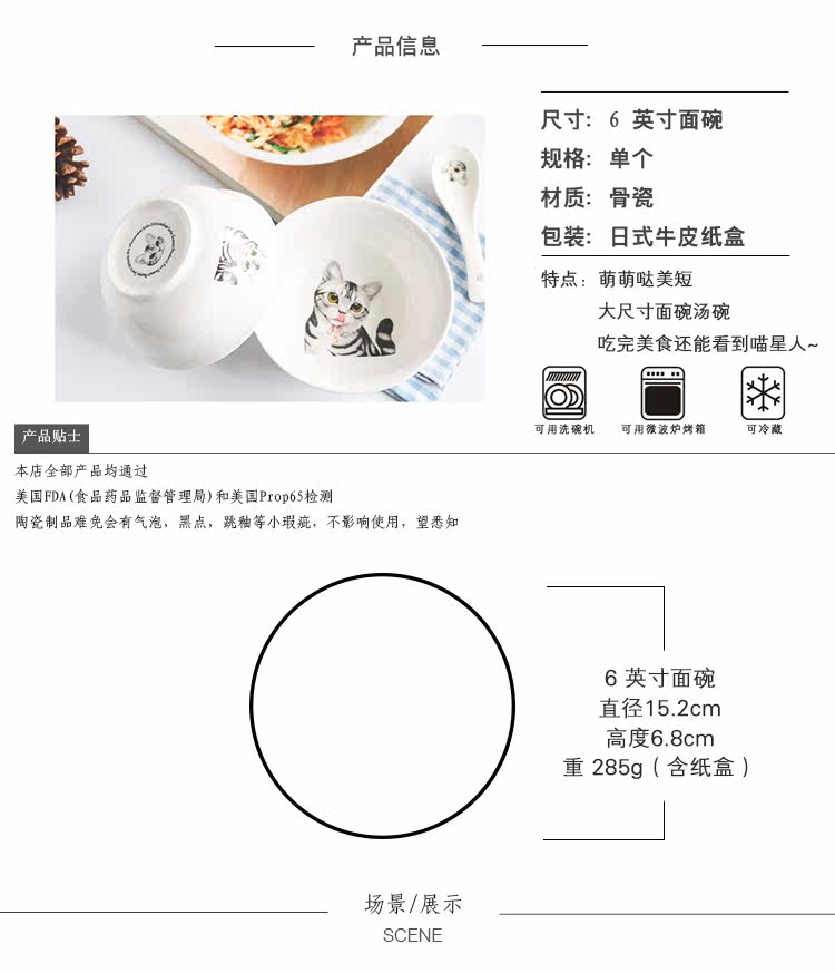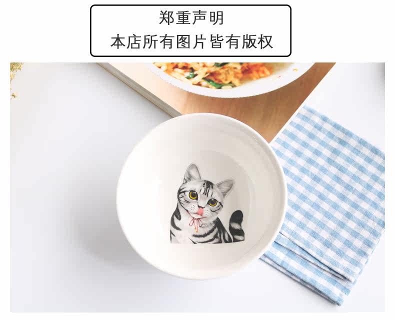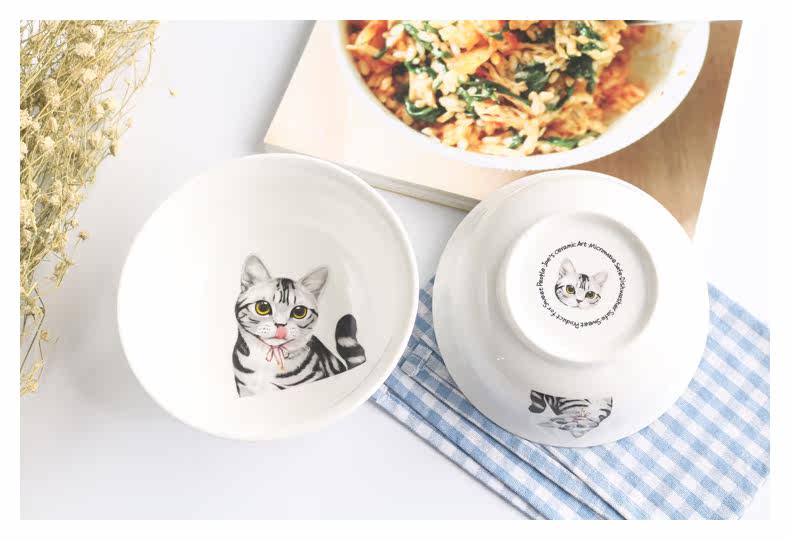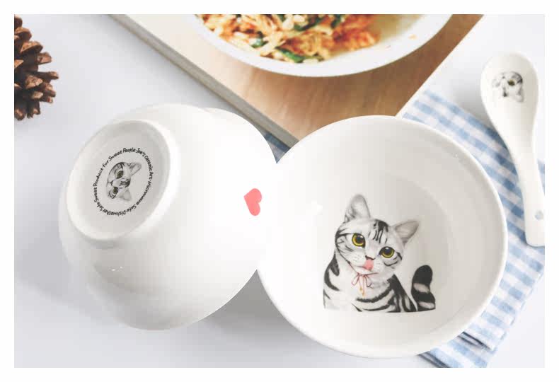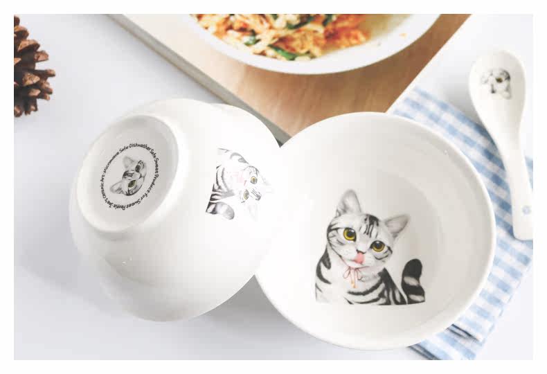 美国短毛猫咪系列水果甜品沙拉碗骨瓷碗可爱家用吃饭米饭碗泡面碗
