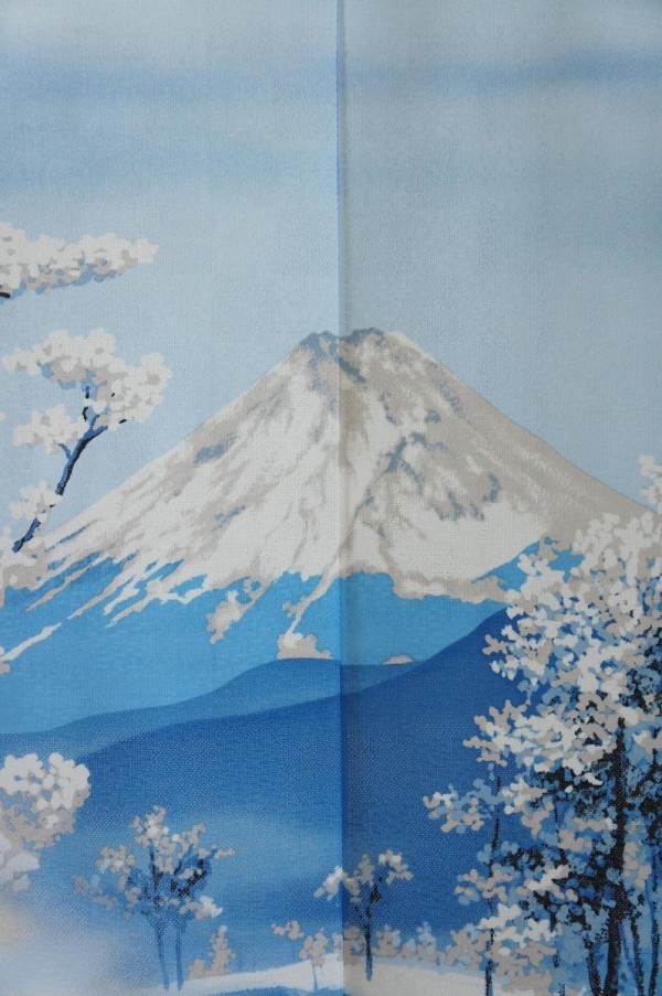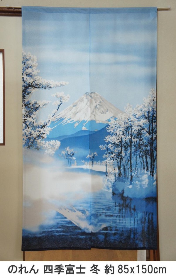 | 日本の美しい富士山の冬景色をデザインしたのれん。 |