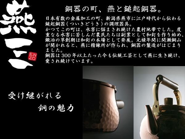 | 素材・材質 | 本体:純銅、内面:ニッケルメッキ、外面:ミラー仕上げ |