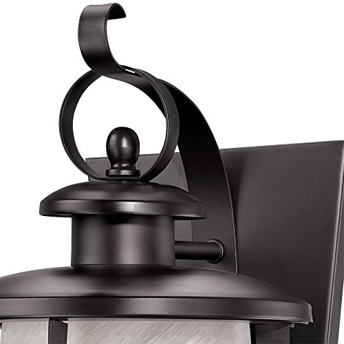 The Westinghouse Senecaville One-Light Exterior Wall Lantern blends Craftsman style with a modern appeal. The shade hangs from a scroll arm and features two horizontal rings around the top. The white alabaster glass gives off a gentle glow and is held by sturdy steel coated in a weathered bronze finish. Install this lantern in your front or back entryway, by your garage door, or anywhere you want additional light outside your home. No matter where you mount it, the fixture will provide a classic look while blending with modern decor. Product reference number 66742.Feature