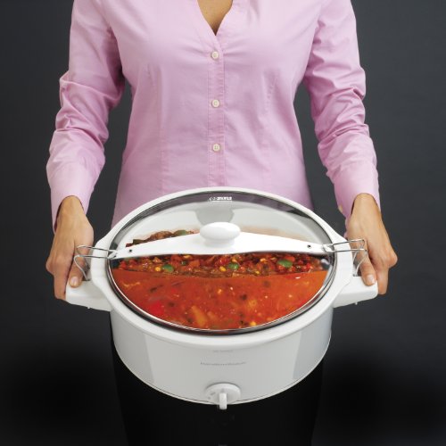 Clip-tight sealed lid locks onto slow cooker to help prevent messy spills