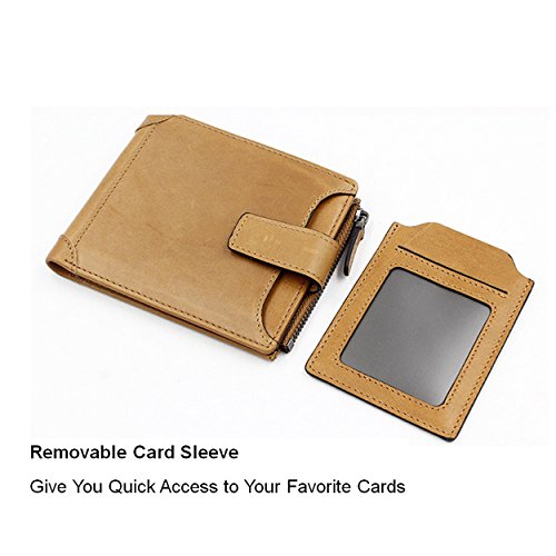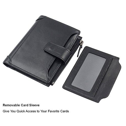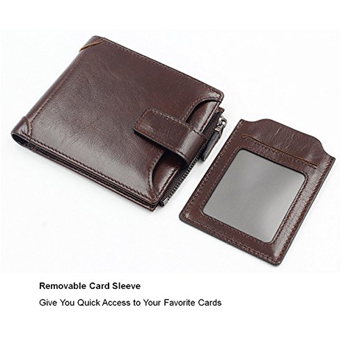 -. Title : Mens Genuine Leather Wallet Removable Credit Card Holder with Zipper Pocket